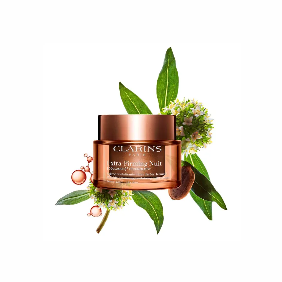 A Investigação Clarins cria um cuidado de firmeza cujos poderosos princípios ativos ajudam a aumentar as reservas de colagénio* para uma pele mais firme em 7 dias.** Um creme de noite para firmeza da nova geração.